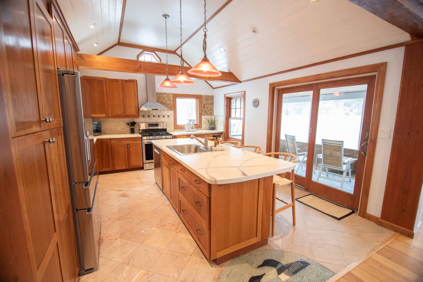 Your fun-for-the-whole family vacation, lakeside retreat with friends or remote working paradise with 180 degree views of the lake awaits. This three bedroom, three bathroom lakefront home is outfitted with everything you’ll need to cook and entertain, play on 1,200-acre Lake Mascoma, or lounge for hours with coffee on the screened in porch. Two kayaks, a paddleboard and canoe are always here and free to use.